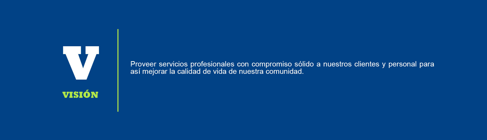Proveer servicios profesionales con compromiso sólido a nuestros clientes y personal, para así mejorar la calidad de vida de nuestra comunidad.
